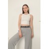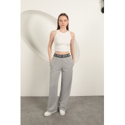 Veralis İki İplik Kumaş Beli Yazı Detaylı Kadın Pantolon, rahat kalıbı ve modern tasarımıyla gün boyu konfor sunar.