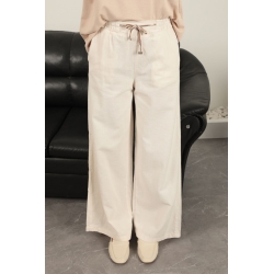 Veralis Keten Kumaş Bol Paça Kadın Pantolon Ekru – Rahat ve Şık!