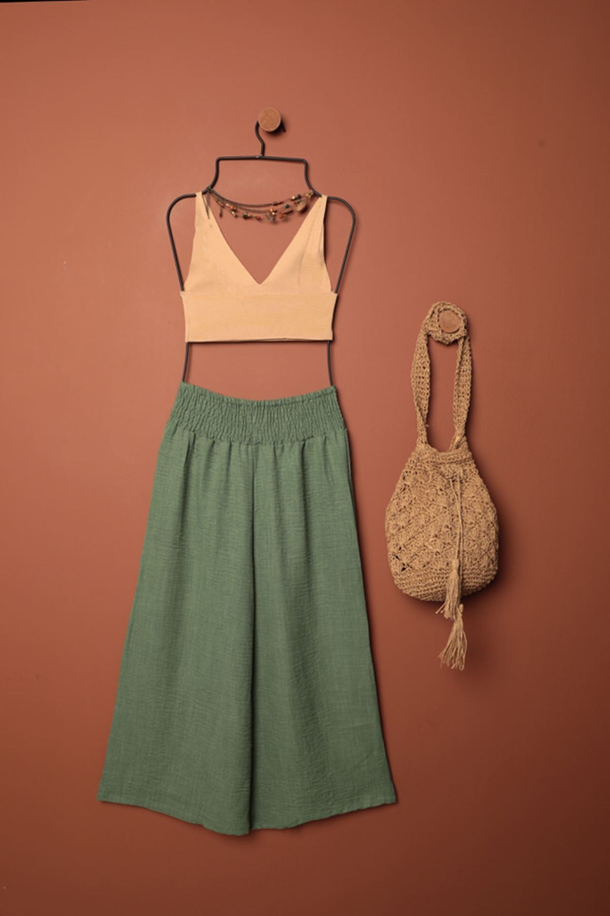 Veralis Keten Aerobin Bol Pantolon Haki | Şık ve Rahat Kesim
