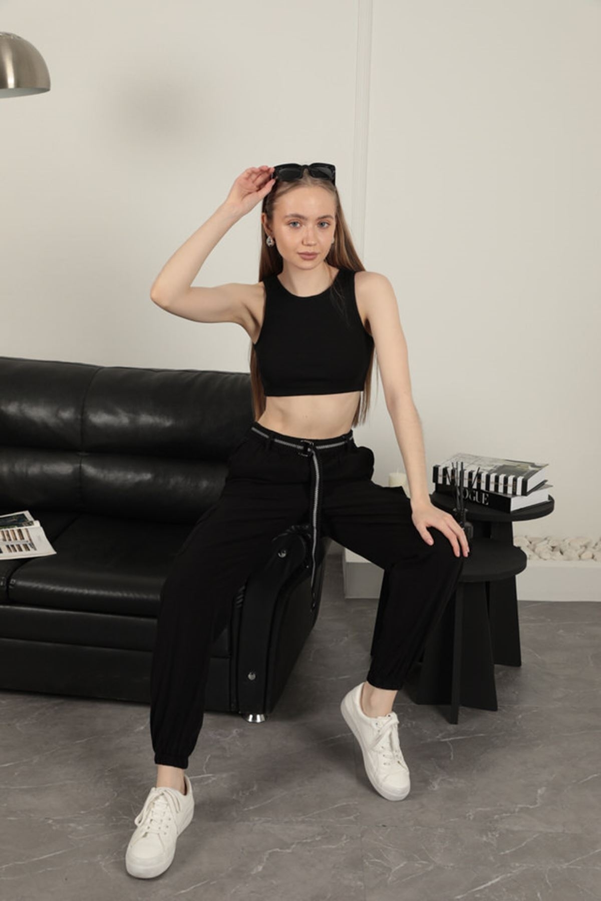 Veralis Gabardin Kumaş Kemerli Kargo Pantolon Siyah– Günlük Şıklık ve Konforun Buluştuğu Nokta!